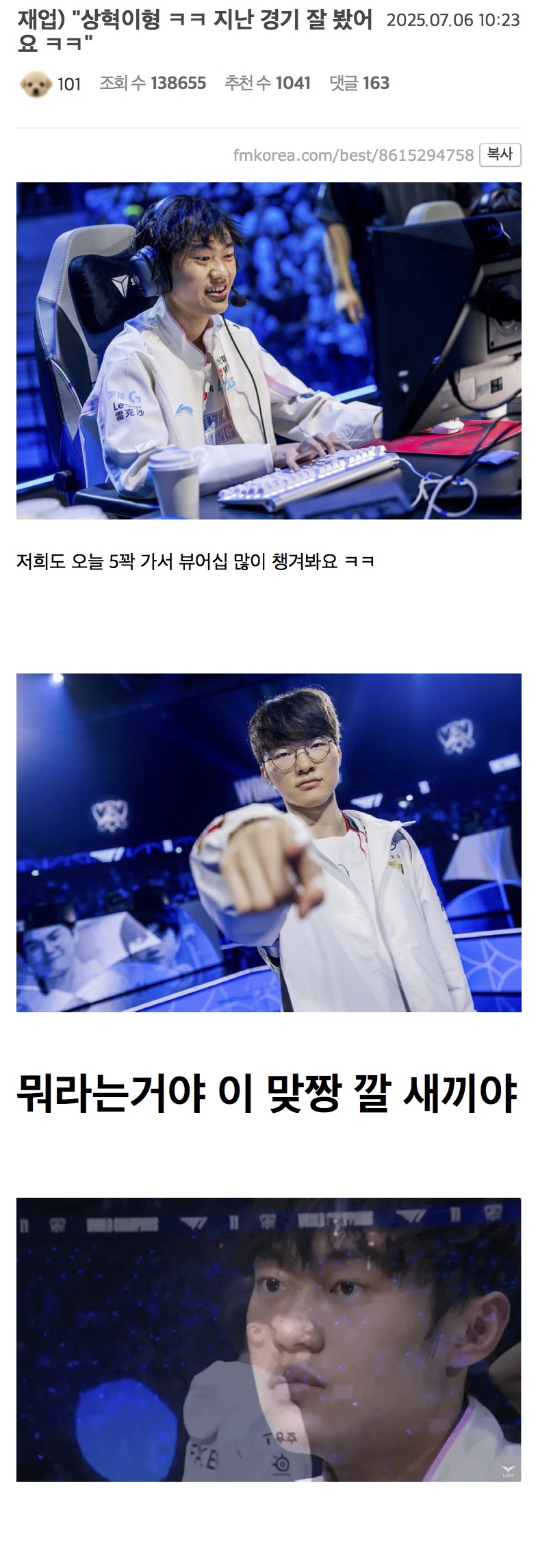 중둑애들은 구마한테 사거리 긴 원딜주고 이기는걸 본적이 없는데 왜 다 풀고 겜을 했는가요???? 어차피 페이커는 못막잖아요..