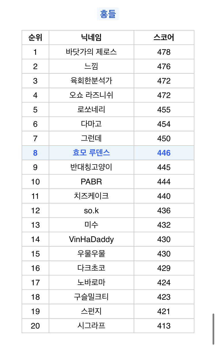 겨우 순위 안에는 들겠네요… 하이랭커는 꿈도 못 꾸고.