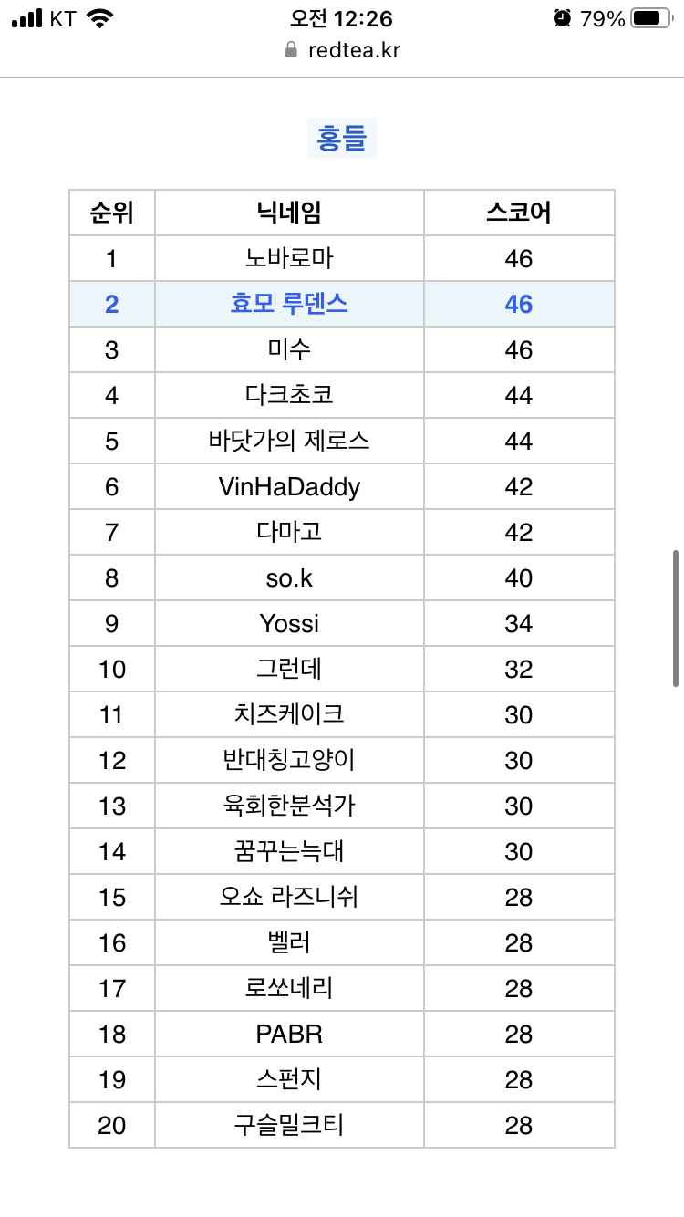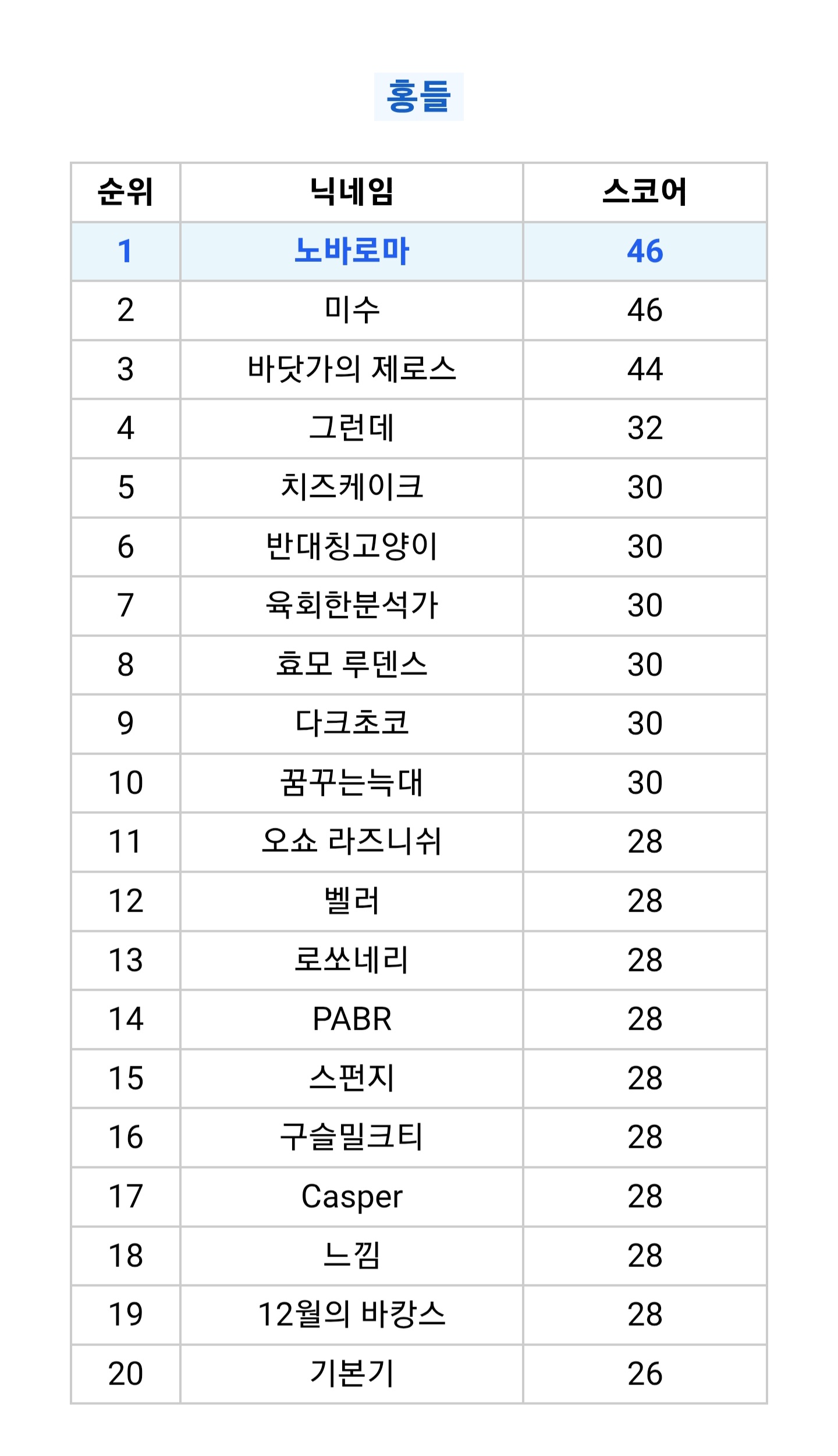 지난 달 홍들에서 2등했습니다. 1등하시는 분이야 뭐 천상계니까 저 정도면 만족합니다. ㅎㅎ