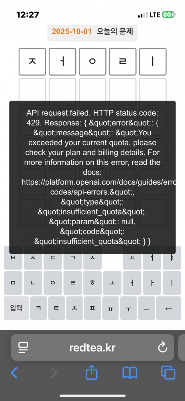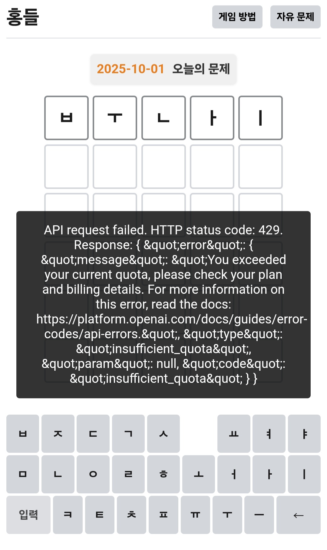 홍들이 OpenAI API를 쓰는데 구매해놓은 토큰이 오링났습니다.