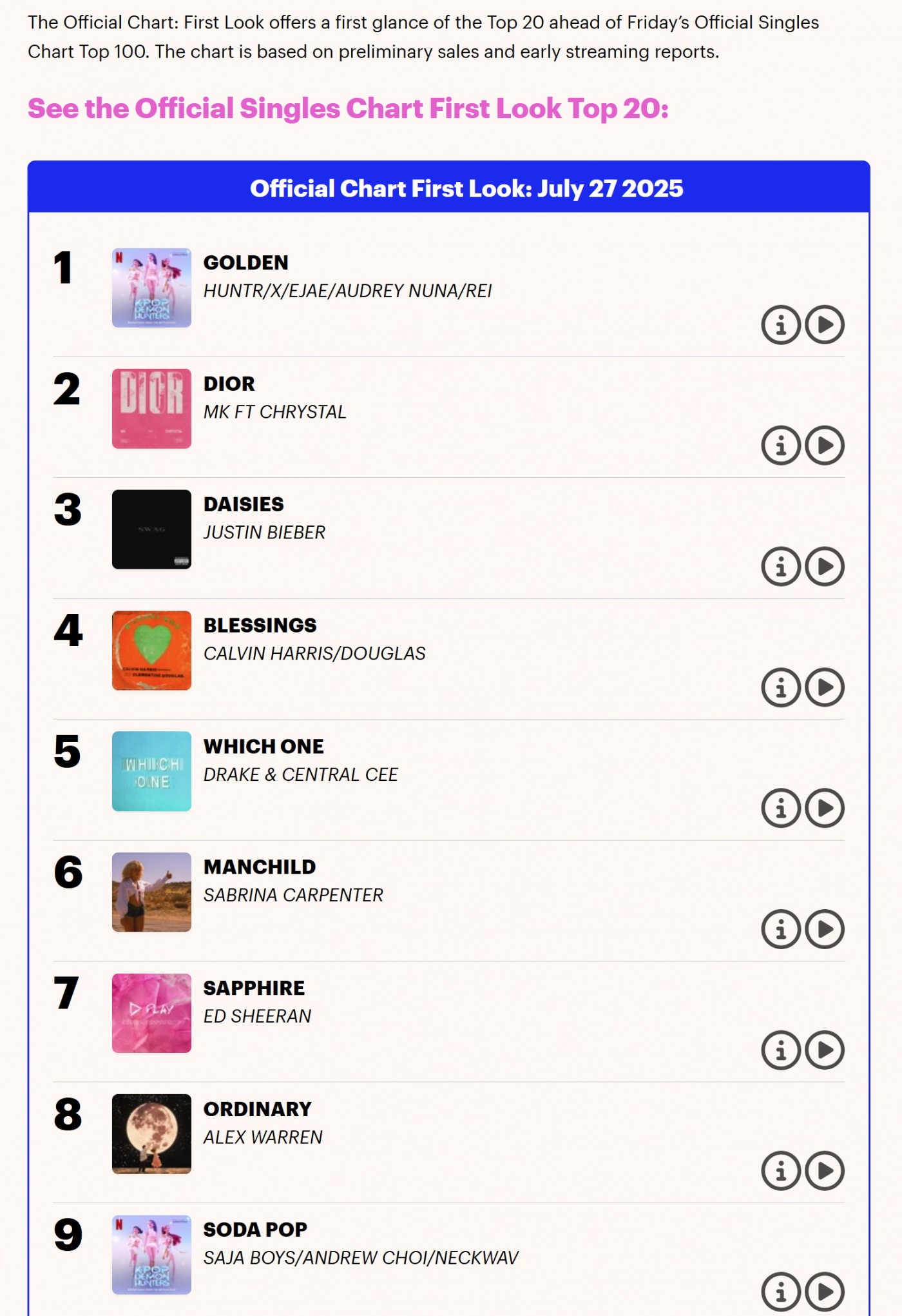방송/연예'케데헌' OST '골든' 빌보드 싱글 2위…글로벌 차트도 정상 3 |