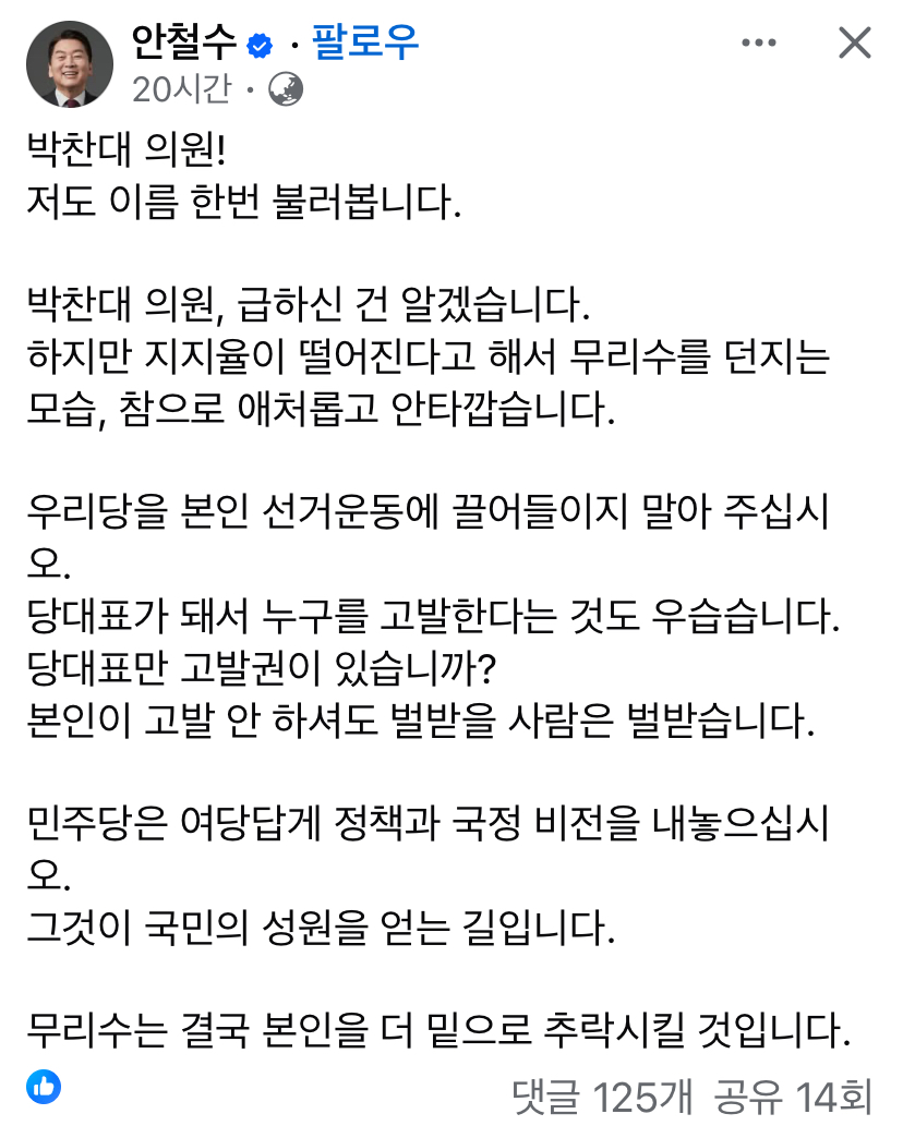 안철수 좋아하는 단일화 안하면 김문수 vs 장동혁 당대표 선거 볼것 같은데.. 철수님 이번에도 철수 하나요