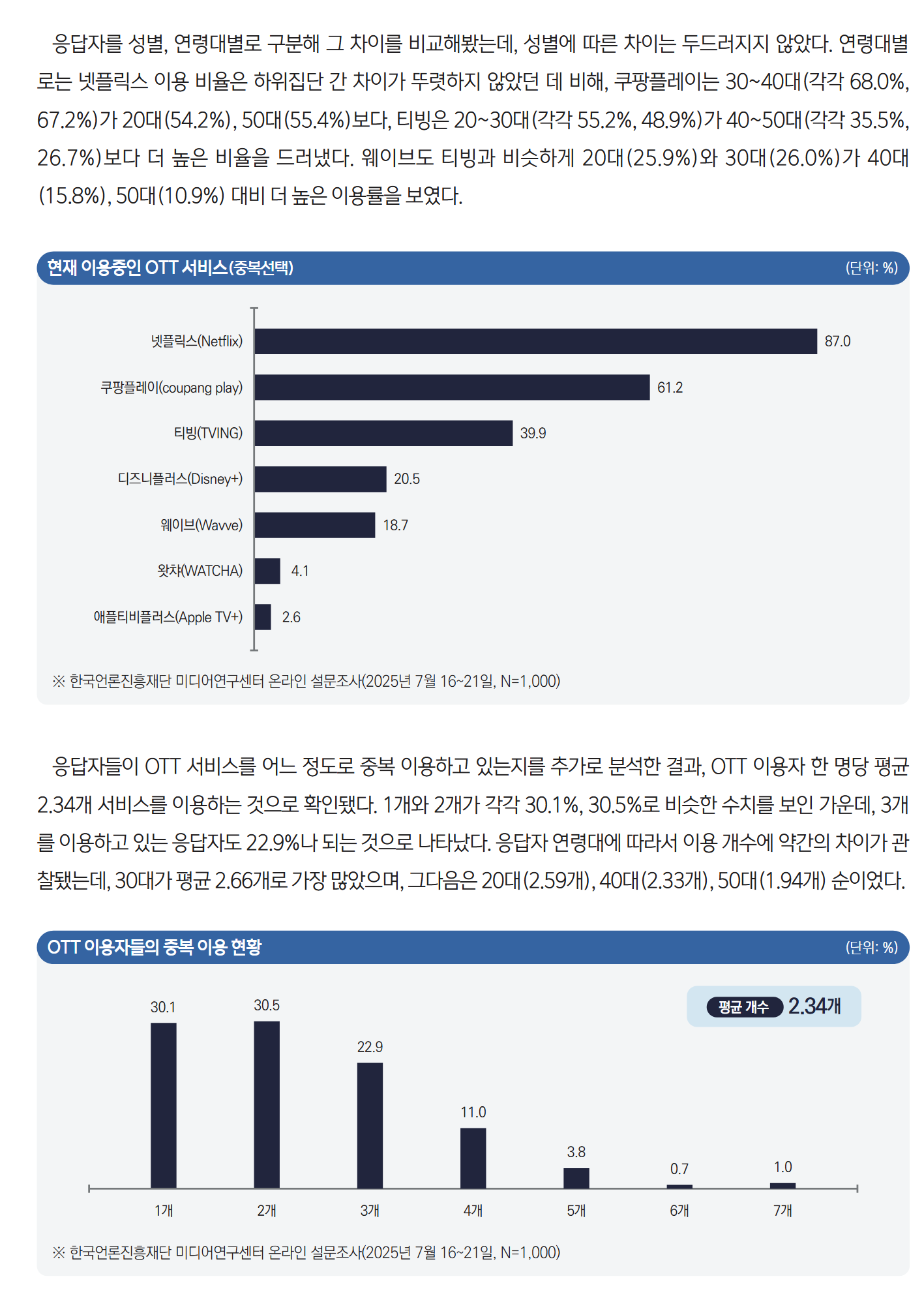 Subject   OTT 보는 국내 20~50대, 1인당 평균 2.3개 이용