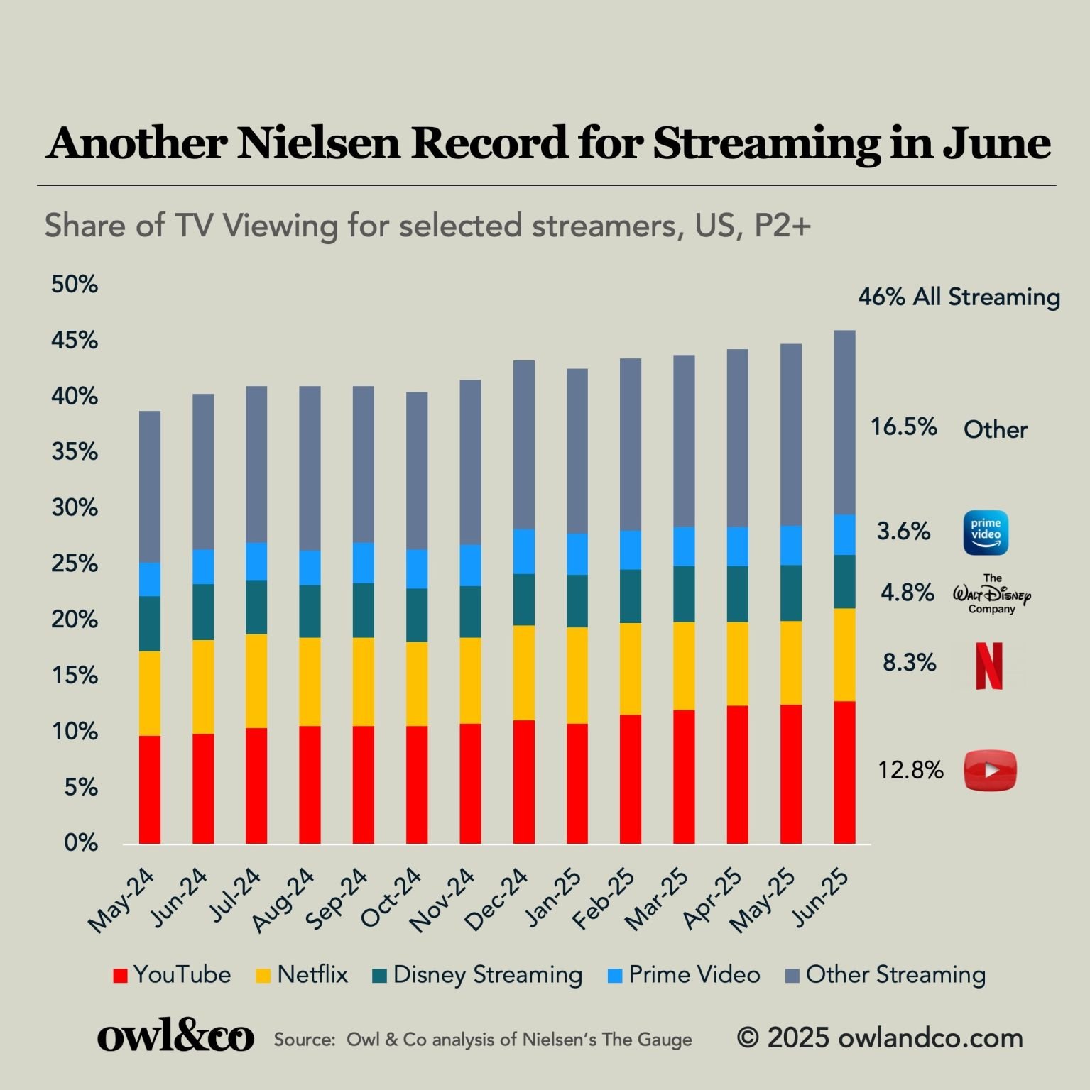 쿠플이 많이 치고 올라왔군요. 참고로 최근 미국의 스트리밍 시장 경우(위 표)는 유튜브 포함입니다.
