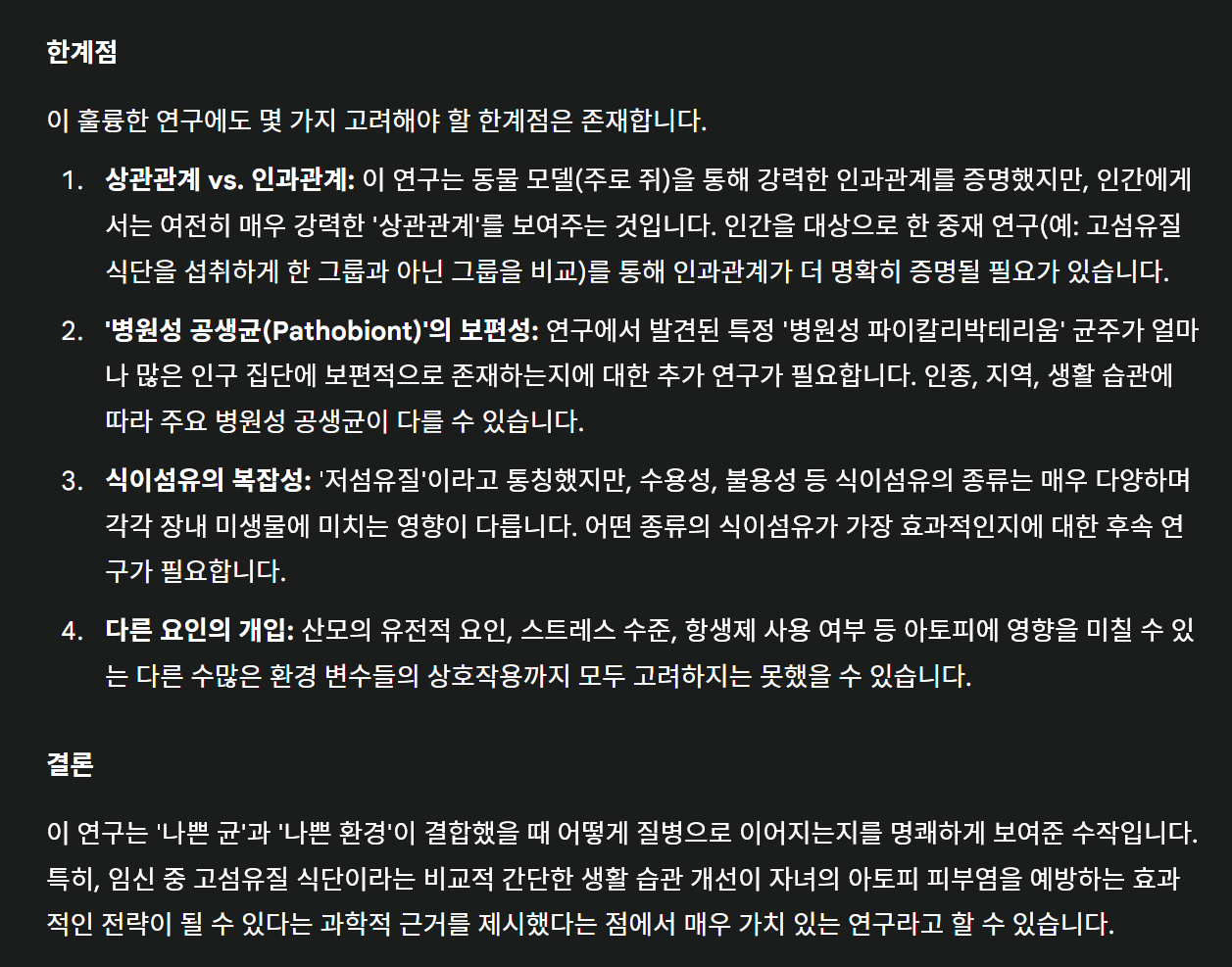 장내미생물 10~20년째 핫한 분야인 것 같기는 합니다. 하지만, 어머니들이 죄책감 안 느꼈으면 좋겠습니다. 애들 앓는 것만도 힘들 텐데. 동물 실험 소개고, 가능한 여러 가지 중 하나의 메커니즘 소개입니다. 인간에서 동일 강도의 인과 관계를 확인했다는 것은 아닌 것 같습니다. 아이든 어머니든 건강한 식습관, 생활 습관이 중요하다 정도??  (특히, 섬유질 섭취에 신경 쓰자!)