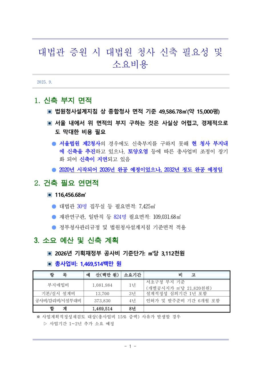 Subject   대법관 증원비 1조 4천억 용도 봤더니…서초동 땅값?
