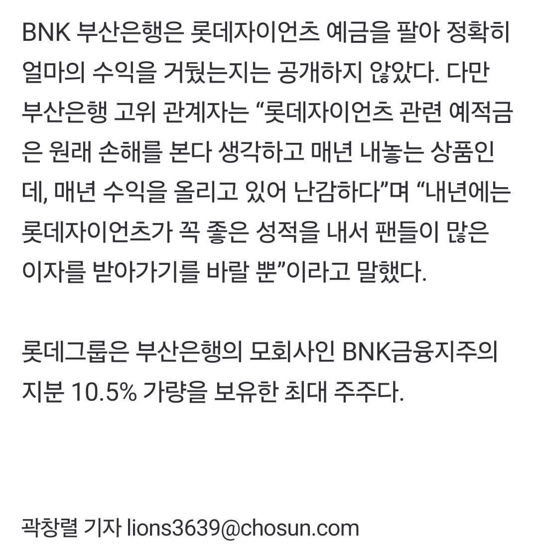 경제BNK 부산은행, 8년간 롯데자이언츠 예금 팔아 이자 160억원 아꼈다 6 |