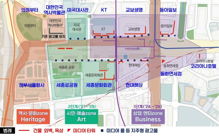이번에 광화문 일대가 전광판을 매우 자유롭게 설치할 수 있도록 바뀌었습니다.