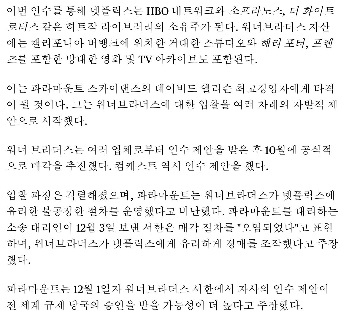 조만간에 발표한다고 하더군요. 이제 HBO Max 콘텐츠도 넷플릭스에서 편하게 볼 수 있을지?