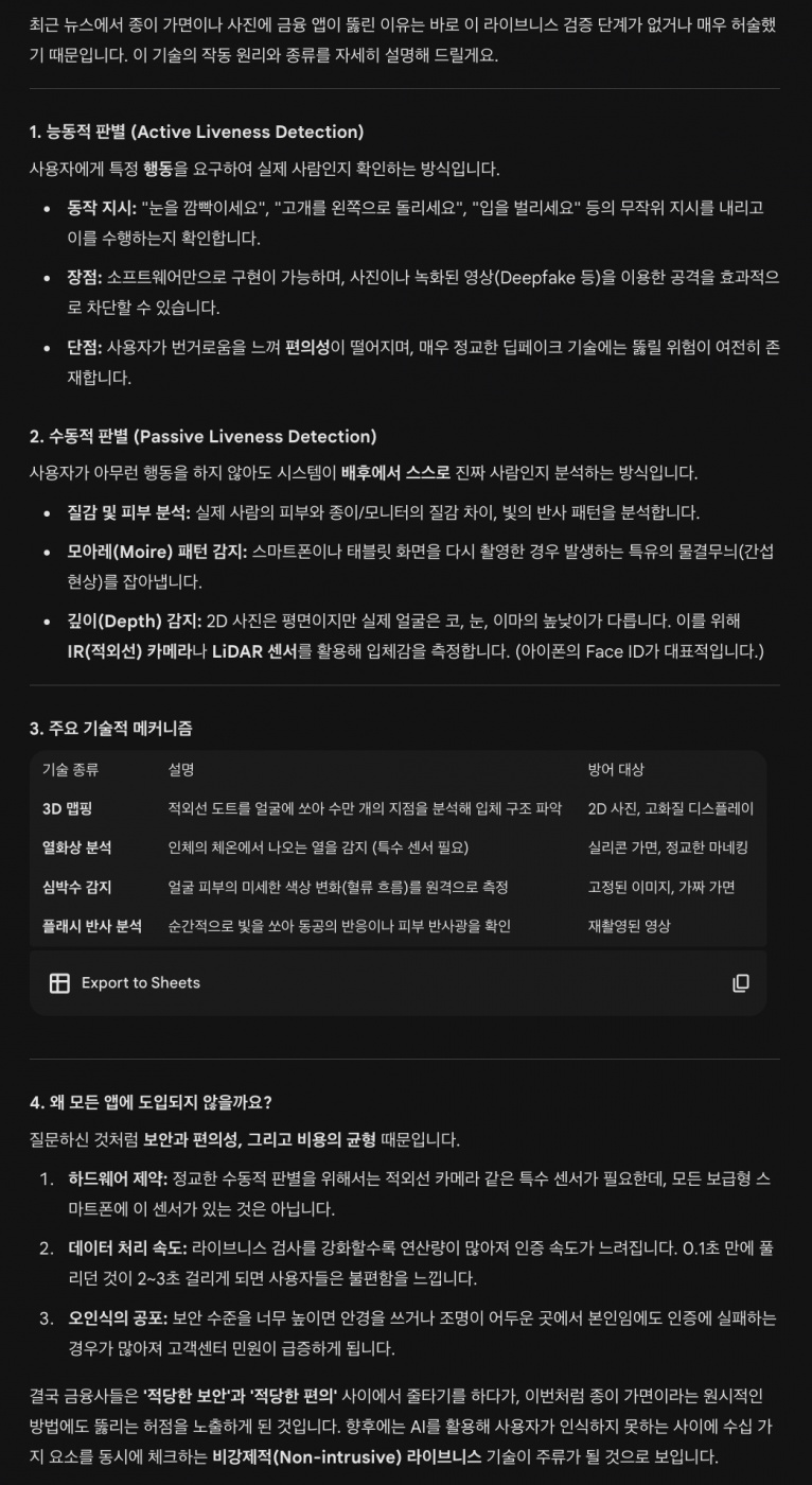 안면 인증, 얼굴 인식, 신분증 사진 대조도 회사/서비스마다 기술이나 보안 정도가 다른 것으로 아는데, 휴대폰 비대면 개통의 경우, 추가 보안이면 없는 것보다는 나으려나요? 은행 앱 같은 경우 비용 문제 혹은 보안과 편의는 트레이드-오프 관계라 너무 인식/인증이 안 되면 소비자들 민원이 늘어서 쉽게 인증되게 해둔 것이려나요? 라이브니스(Liveness)기술은 빠진 것 같은데.