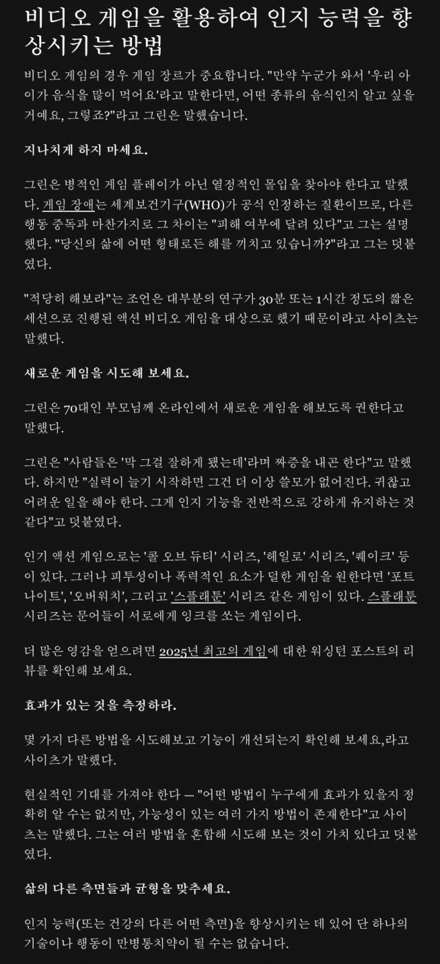 | Subject | WP "비디오게임, 뇌 저속노화와 인지능력 향상에 놀랍게 좋아" |