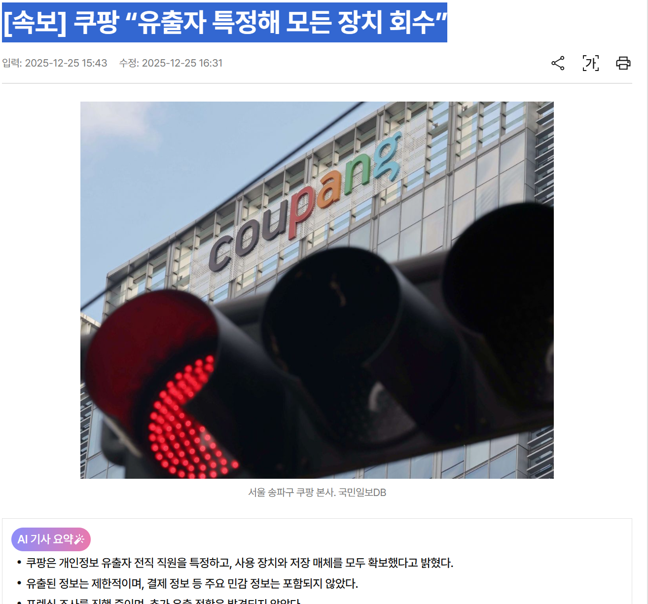 4212 경제쿠팡 “유출자 특정해 모든 장치 회수” 9 + 활활태워라 25/12/25 430 0
