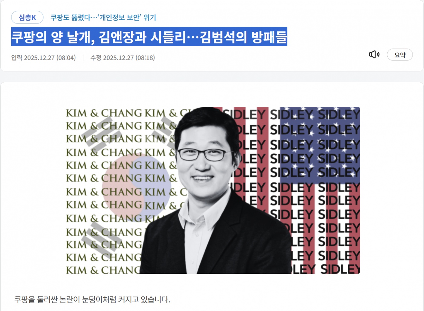 | Subject | 쿠팡의 양 날개, 김앤장과 시들리…김범석의 방패들 |