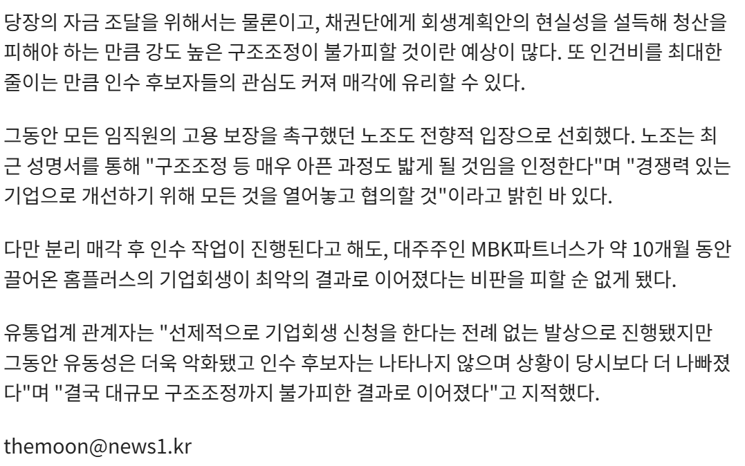 경제'홈플러스 인수' 결국 불발…대규모 구조조정 불가피(종합) 2 + |