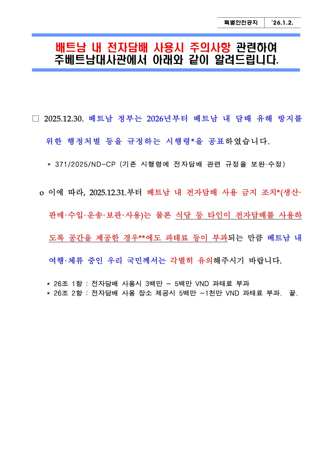 베트남도 한국인 방문이 많은 나라인데, 흡연자들은 주의하셔야 할 것 같습니다.