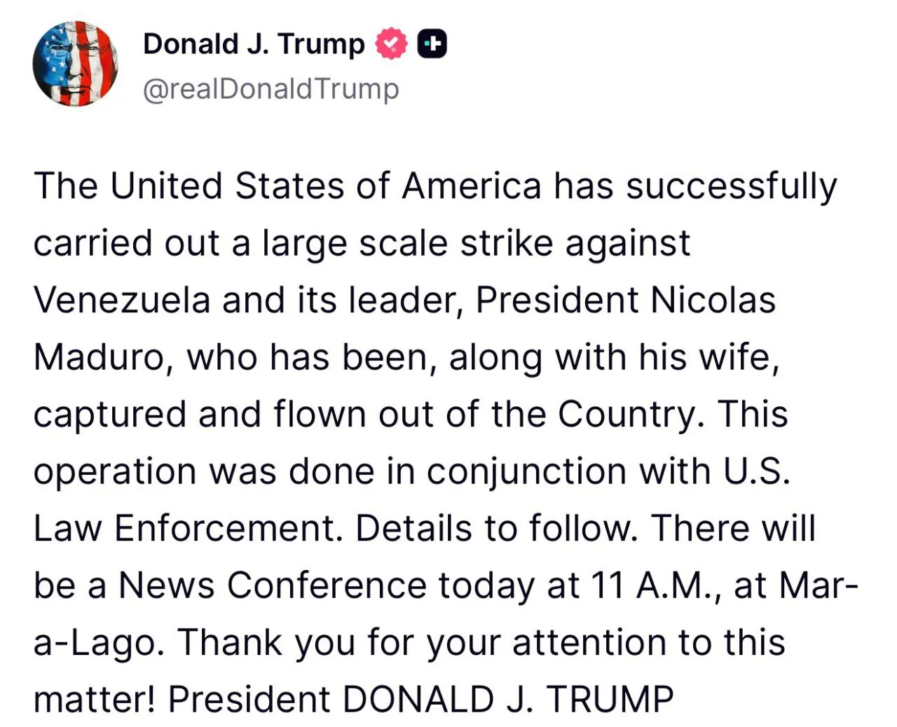 | Subject | 미국 베네수엘라 폭격, 지상군 투입. |