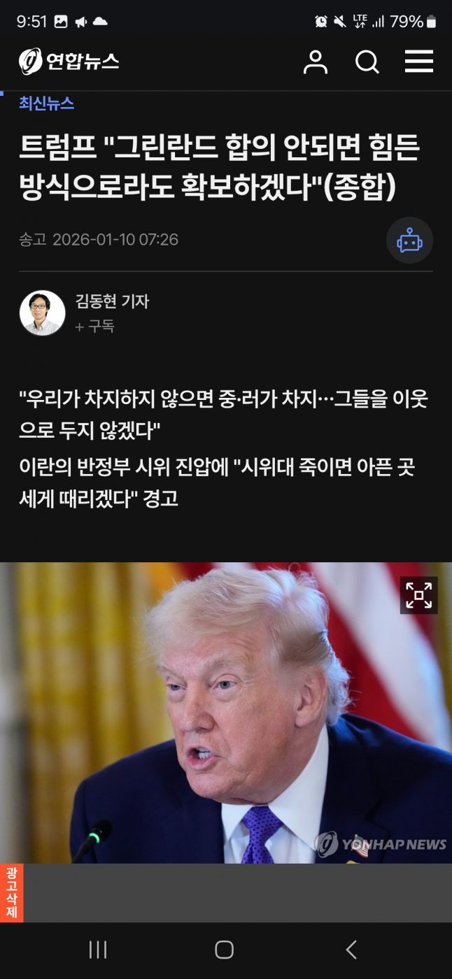 Subject   트럼프 "그린란드 합의 안되면 힘든 방식으로라도 확보하겠다"(종합)