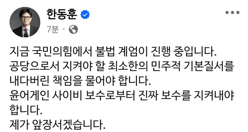 정치한동훈 "지금 국힘서 불법 계엄 진행 중"…김종혁 탈당 권유에 7 |