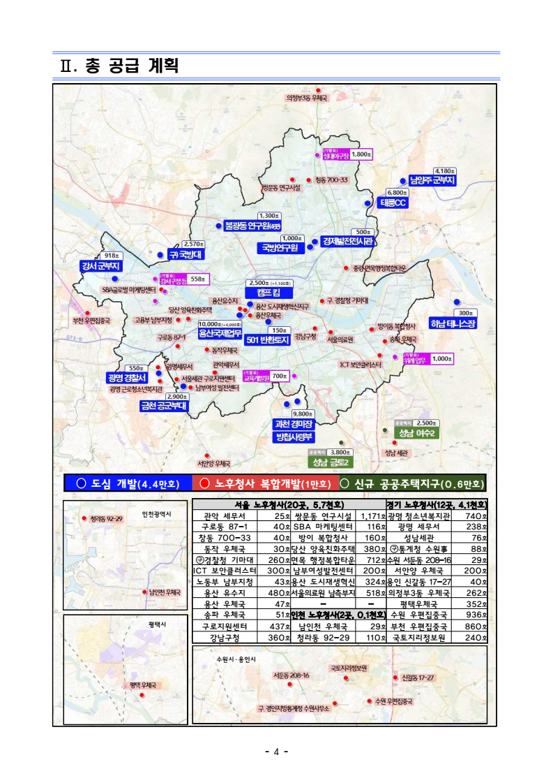 https://www.molit.go.kr/USR/NEWS/m_71/dtl.jsp?lcmspage=1&id=95091650 https://n.news.naver.com/mnews/article/003/0013737490?sid=101 신도시 개발이 아닌 한에서 '영끌'이라 불릴 정도로 규모가 굉장한데, 여러모로 민감한 지역들이 포함돼있어서 반발이 거세겠네요. 특히 육사 골프장(태릉)과 방첩사+경마장(과천) 부지가 눈에 띕니다. https://youtu.be/zxKNq_usQek 쉽고 자세한 해설은 매일경제 집코노미 영상 시청을 추천합니다. 0