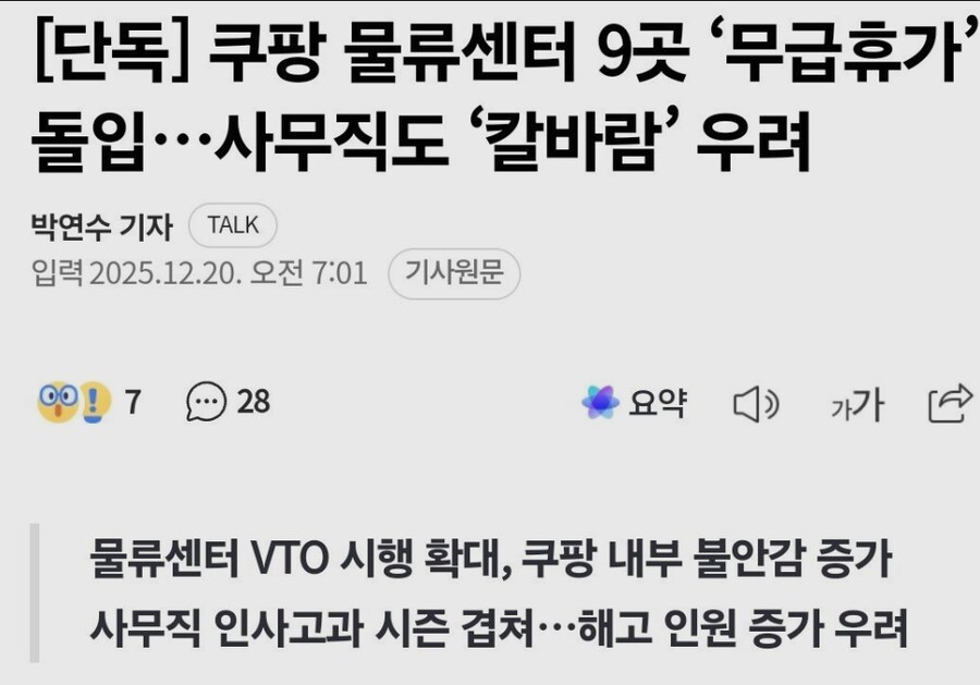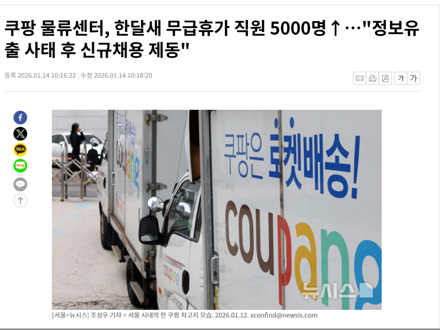 Subject   쿠팡 물류센터, 한달새 무급휴가 직원 5000명↑…"정보유출 사태 후 신규채용 제동"