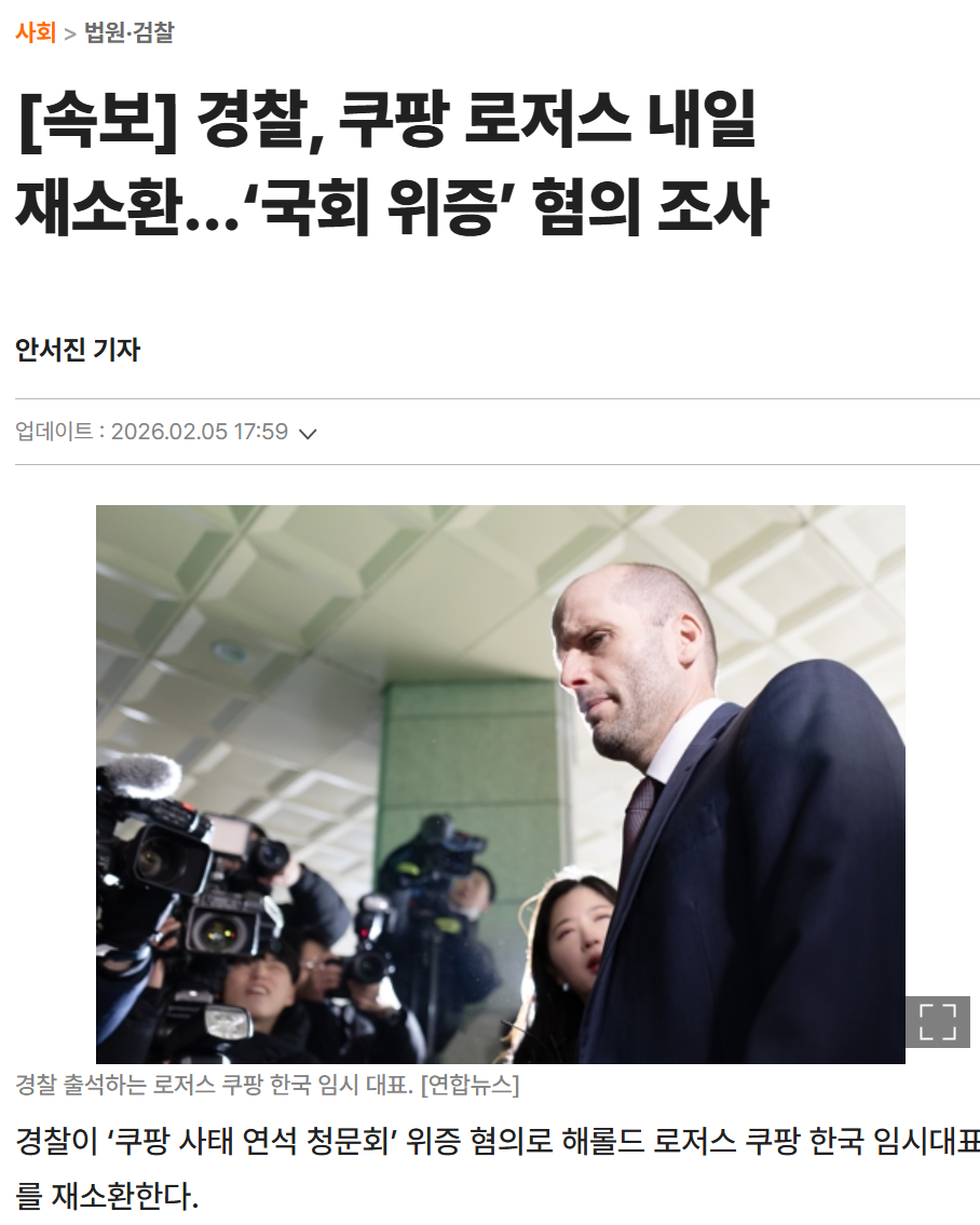 https://www.chosun.com/international/us/2026/02/05/SOJRGGZRKFDFFGHS77725RY3WA/?utm_source=naver&utm_medium=referral&utm_campaign=naver-news 공화당 소속인 짐 조던 하원 법사위원장과 스콧 피츠제럴드 규제 개혁·반독점 소위원장이 5일 해롤드 로저스 쿠팡 한국법인 임시 대표에 대한 소환장(subpoena)을 발부한 것으로 확인됐다. 법사위는 “공정거래위원회(KFTC)를 포함한 한국의 정부 기관이 미국 테크 기업에 대한 차별적인 조치를 더욱 강화하고 있고, 미국 시민에 대한 형사 처벌 위협까지 제기하고 있다”며 로저스가 23일 위원회에 출석해 한국 정부의 미국 혁신 기업 ‘표적화’에 대해 증언하고 한국 대통령실·정부·국회 등과 통신한 기록 전부를 제출할 것을 명령했다. 의회 소환장을 받고 출석에 응하지 않으면 의회 모독 등으로 기소될 수 있어 상당한 구속력을 갖는다. 이번 소환은 도널드 트럼프 대통령이 대미투자특별법 지연을 문제 삼아 한국에 대한 상호 관세를 25%로 올리겠다고 엄포를 놓은 가운데 이뤄진 것이다. 로비 먹은 지 본진에서 한국 청문회를 기만했던 태도와는 다른 어떤 태도로 임할지 정~말 큰 기대가 됩니다. 그리고 내일 또 부른다는데 또 아무말도 안하고 묵묵부답인 태도로 장시간 수사 받다가 끝나지 않을까요? 결국 그래야만 미국에 돌아가서 자기가 피해자임을 강조할거 같기도... 1