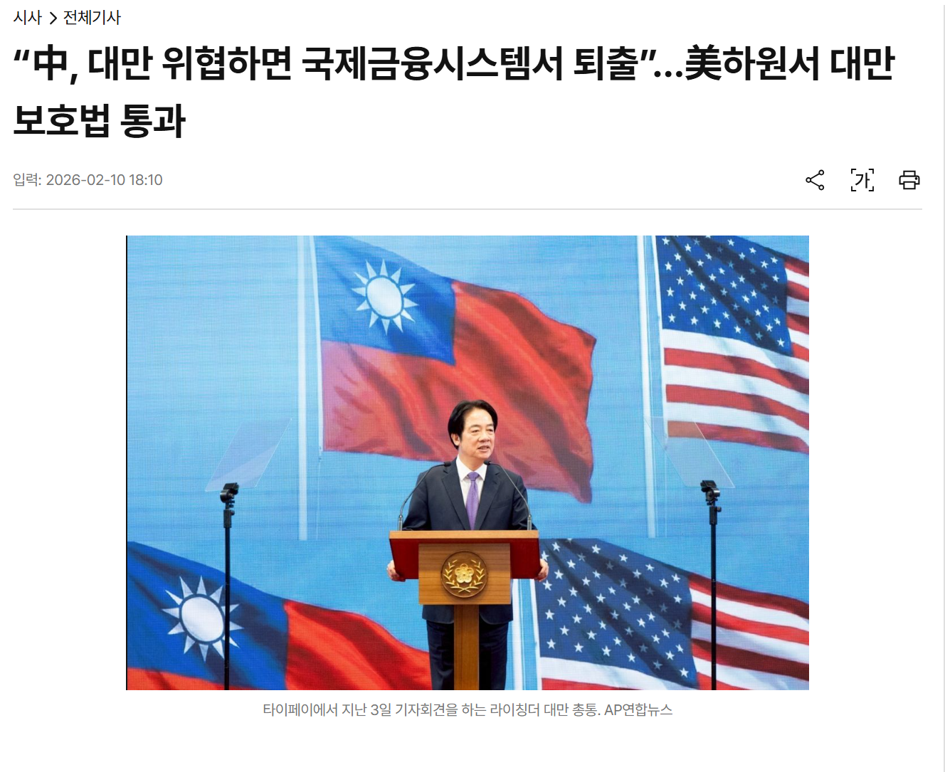 이어 “미국은 중국의 대만 침략 행위를 용납할 수 없으며 결코 묵과하지 않을 것임을 분명히 전달해야 한다”며 “이 법안은 바로 그러한 목적을 위한 것”이라고 밝혔다.