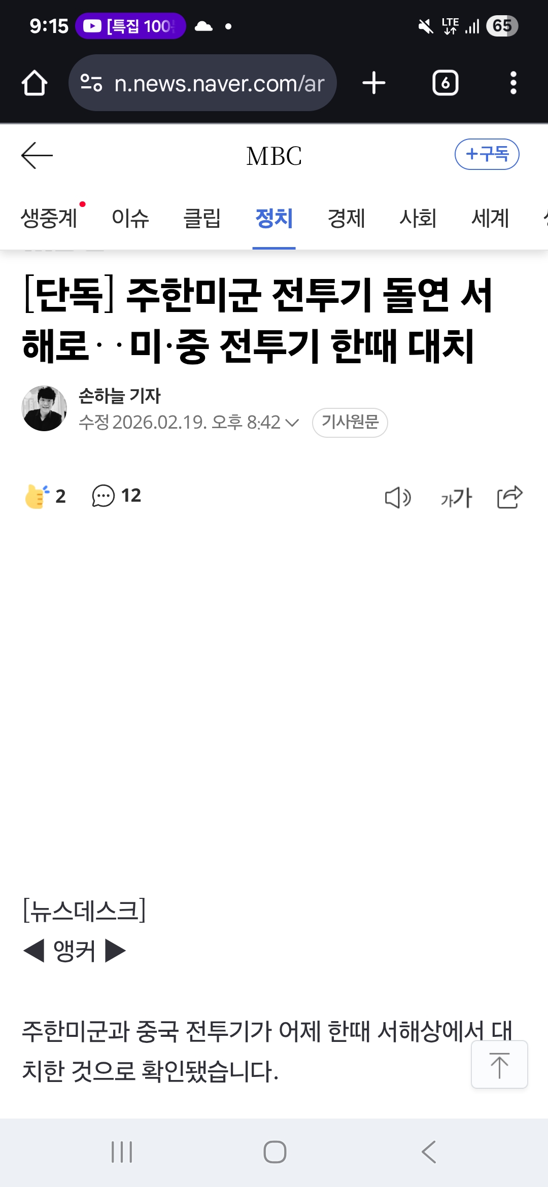 | Subject | 단독] 주한미군 전투기 돌연 서해로‥미·중 전투기 한때 대치 |