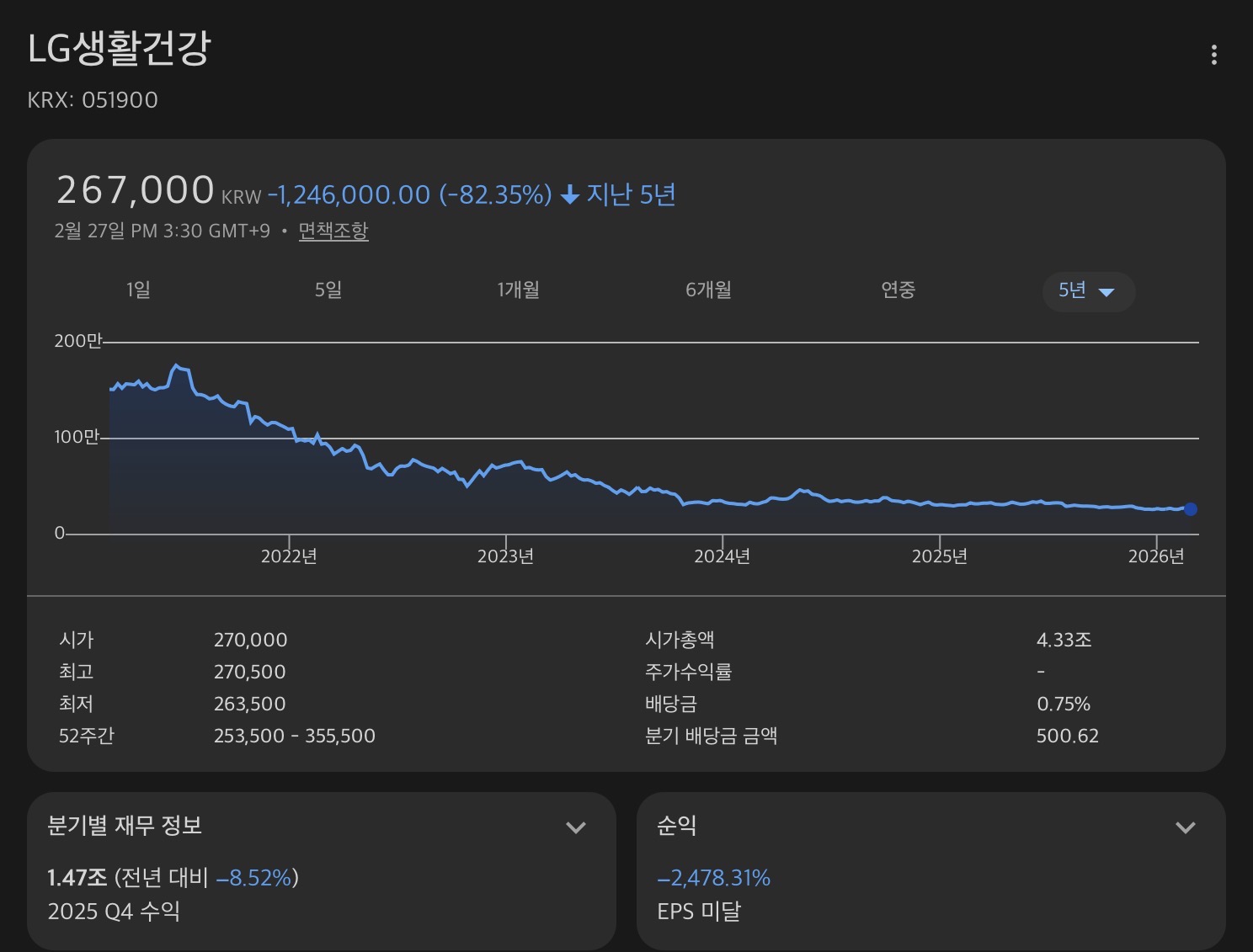 ..2025년 코스피가 큰 폭으로 오른 뒤 많은 ‘저가 매수’ 신봉자들이 현금을 들고 더 좋은 진입 시점을 찾고 있지만, 이는 어리석은 판단이다. 시장 타이밍을 맞추는 엄청난 능력을 갖고 있지 않다면, ‘저가 매수’ 전략은 강세장이든 약세장이든 나쁜 결과로 이어진다.. 떨어지는 주식을 잡아채기 위해 우선 현금을 들고 있어야 한다. 하지만 상승장에서 수익률이 낮은 현금을 과도하게 보유하는 것은 큰 부담이다. 주가는 떨어지는 날보다 오르는 날이 훨씬 많기 때문이다. 연 2~3%대인 한국의 예금 금리는 물가상승률을 간신히 웃도는 수준이다.. 물론 정확히 저점을 짚어낸다면 승자가 되겠지만, 과연 그런 시장 타이밍 능력을 갖고 있는가? 그런 투자자는 극소수고, 타이밍 실패는 큰 비용으로 돌아온다. 작년 말까지 지난 40년간 코스피의 연평균 수익률은 8.5%였다. 그 기간 중 최고 상승일 10일을 놓치면 수익률은 6.0%로 떨어지고, 상위 20일을 놓치면 수익률은 4.0%에 불과하다.. https://www.chosun.com/economy/weeklybiz/2026/02/26/46I2Z7FXWNEWZFNABHHDLLPFUI/ https://youtu.be/LaLTc78NLTY?si=gzpudjHHcssFua1d 0