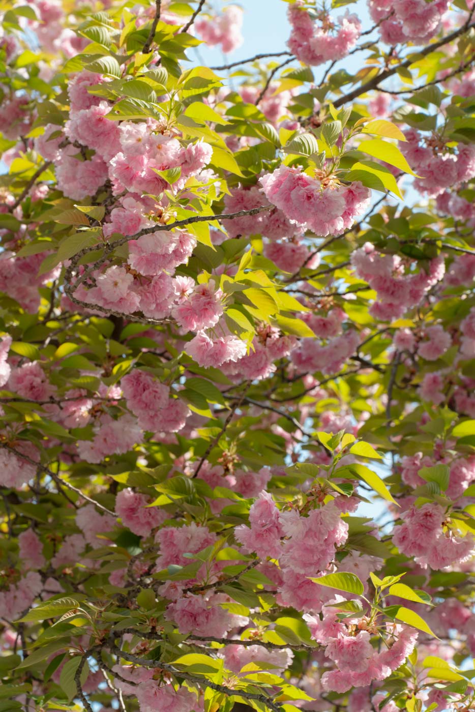 잎이 풍성해진 걸 보니 만개에서 살짝 꺾인 겹벚꽃이었습니다.