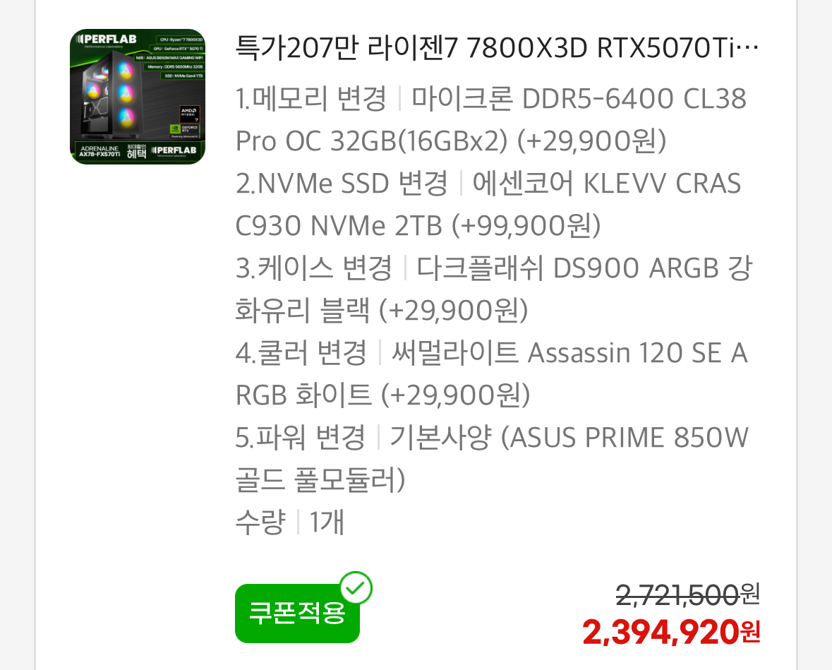 16999 IT/컴퓨터완본체 게이밍 조립피씨 구매 고민중입니다 6 전투용밀감 25/09/16 806 0