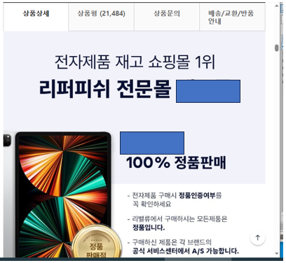 "정품", "자급졔"라는 이야기만 있고 중고폰이라는 이야기는 없는데, 딱 하나 "재고 쇼핑몰 리퍼피쉬 전문몰 OOO" 이라는 표현이 전부였습니다.