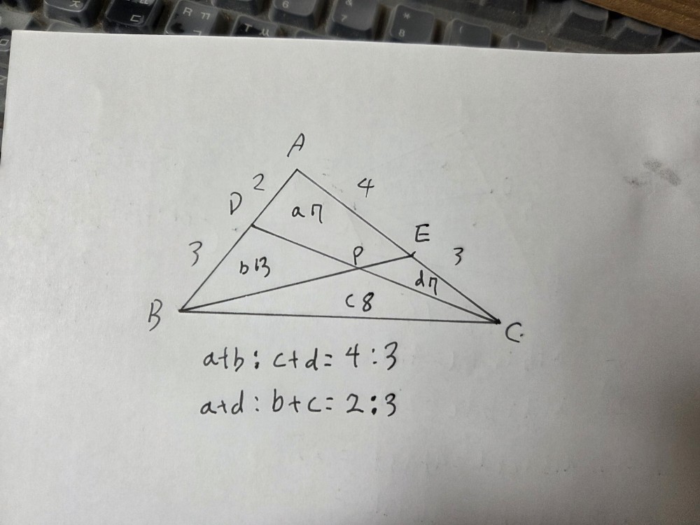 그러면 이제 c : d = BP : PE니까 8:7이 나오는데
