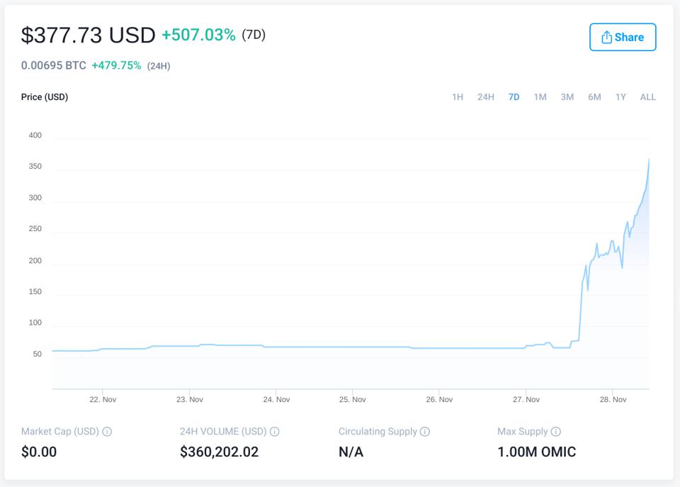 새 변이 오미크론으로 위험자산들 대부분 급락한 가운데, 듣보잡(?) 코인 오미크론 떡상