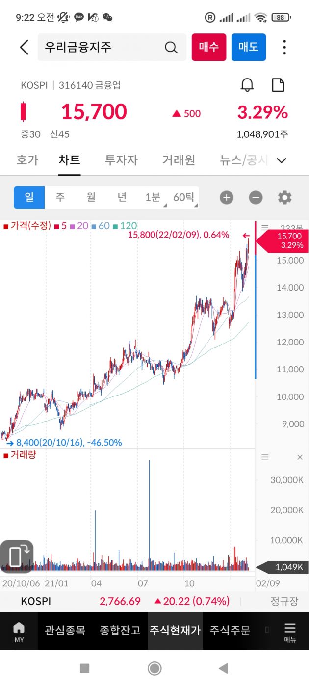 89로 올랐을 때 보유량의 60%를 익절했는데 오늘 93까지 가네요