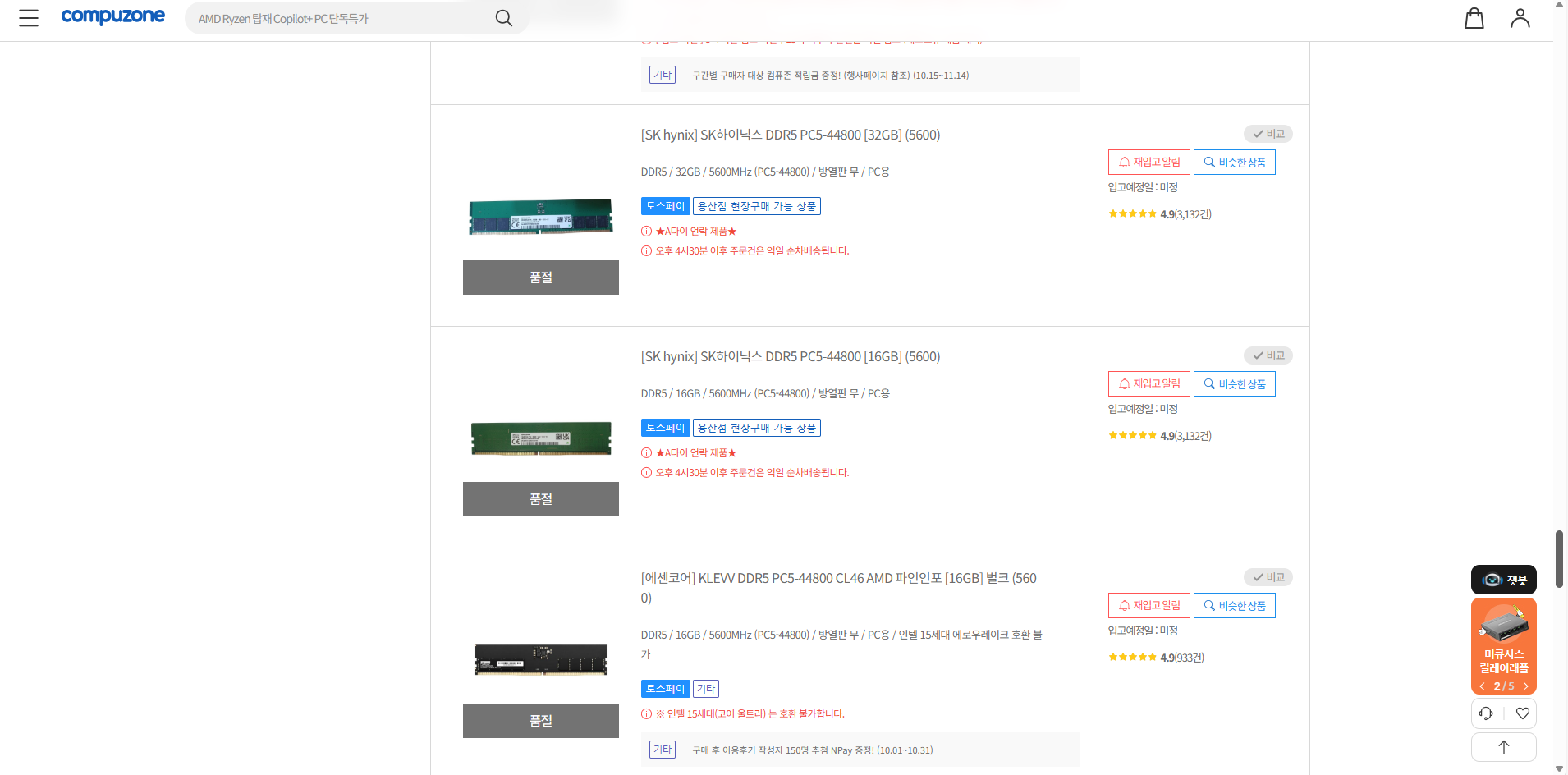 소매로 흔히 조립pc에 많이 들어가는 ddr5 16~32gb 램은 지금 사실상 못 구한다고 보면 됩니다. 돈이 있어도 못 구합니다. 어차피 튜닝램하고 가격 차이도 별로 안날게 뻔한지라(이 또한 유구한 역사입니다) 튜닝램을 가야 하는데 그러면 16gb x 2 해서 기본 32~3만원으로 시작하는 막장 상황입니다.