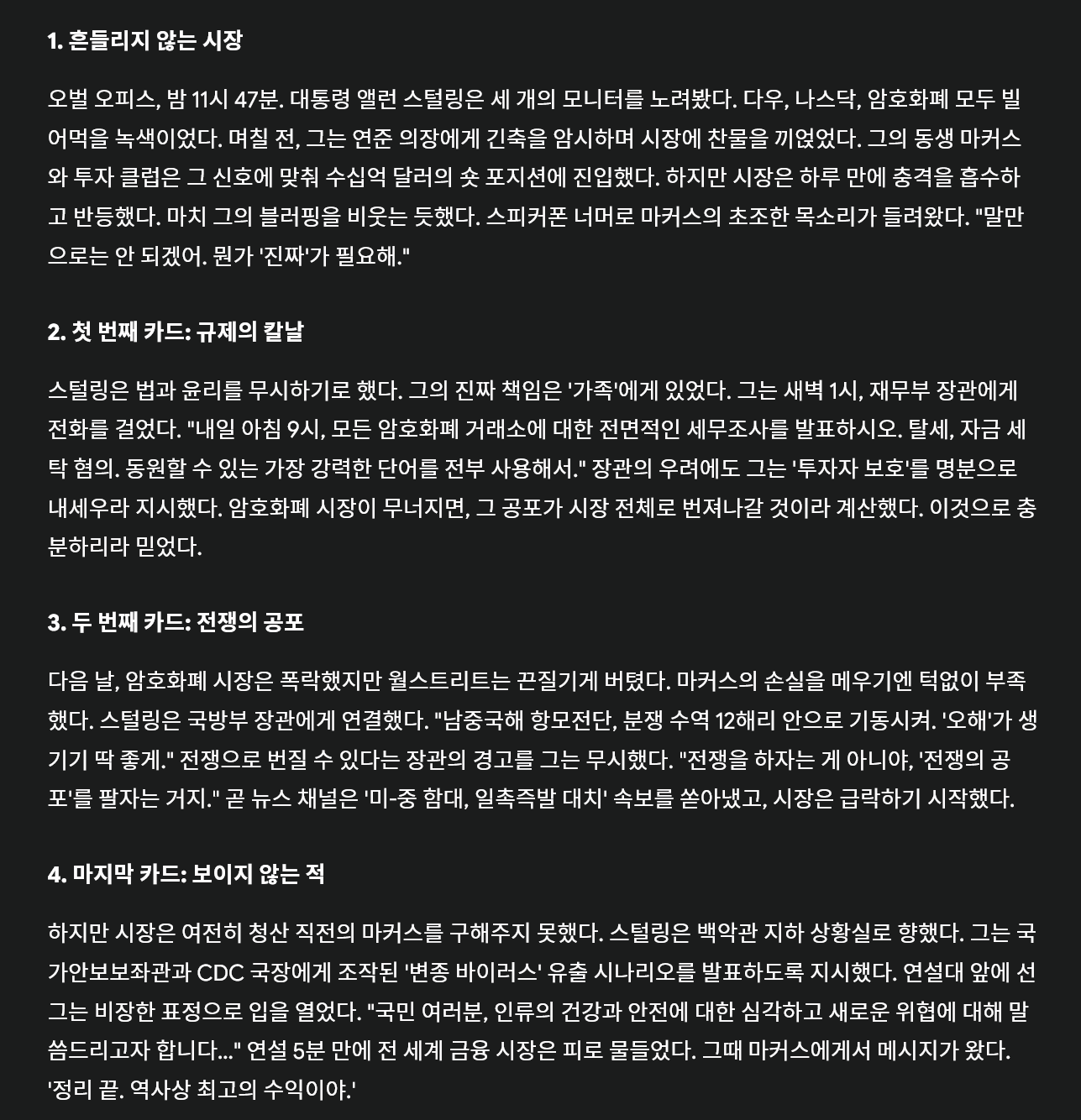 (당연히, 시장을 움직여 사적 이익을 노리는 것은 법적, 윤리적으로 허용되지 않지만, 그런 것쯤은 가볍게 무시하는 인물이라고 가정)