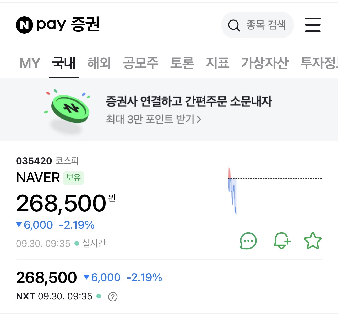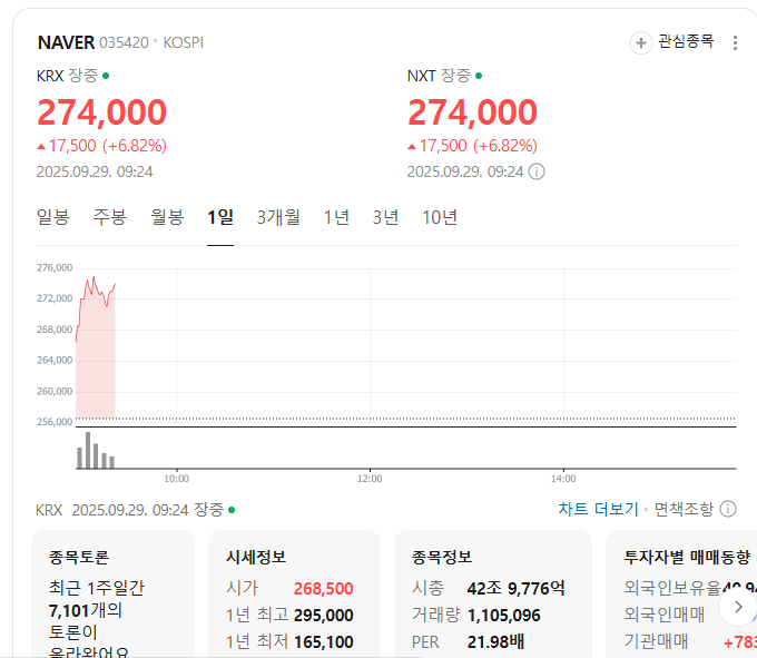 오늘 네이버 7% 이상 급등, 카카오도 반등 했는데도 2% 상승률 입니다. 뭐 손해는 안봤으니 됐습니다.