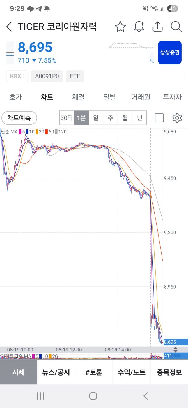 전 관련 ETF는 오전 9시에 먼저 팔고 봤는데 다행 나이스