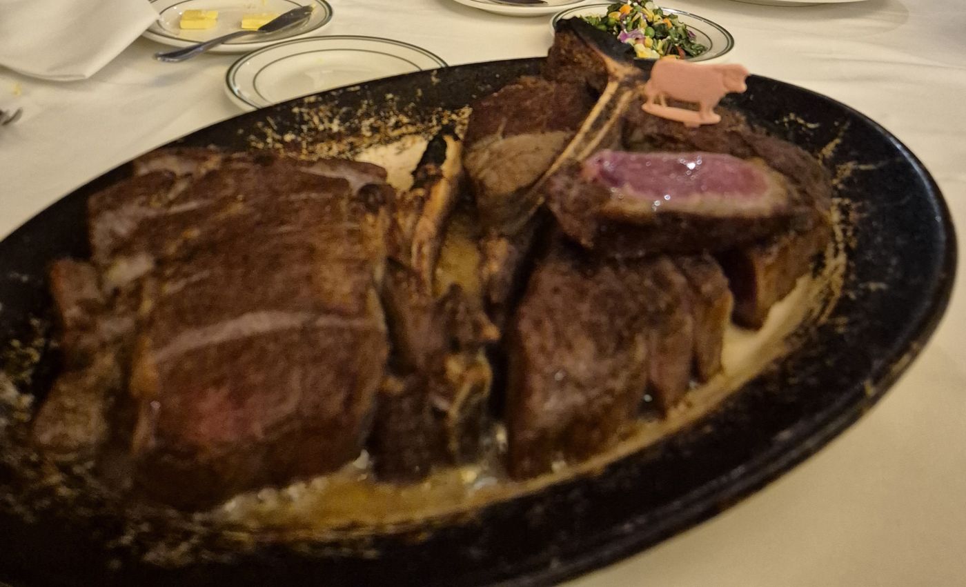 고기는 포터하우스와 립아이를 주문했습니다.